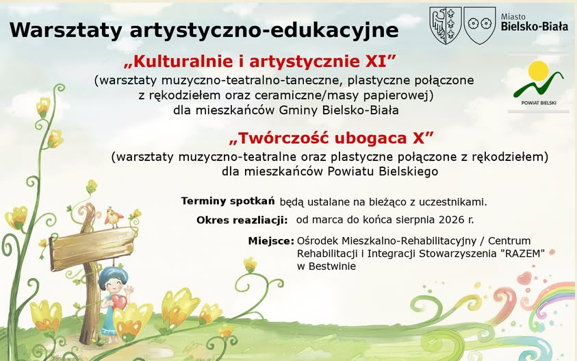 Stowarzyszenie „RAZEM” serdecznie zaprasza do uczestnictwa w warsztatach artystyczno-edukacyjnych pod hasłem „Kulturalnie i artystycznie XI” oraz „Twórczość ubogaca X”.